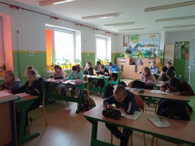 Spoza obwodu do szkoły uczęszczją dzieci z Grodziska, Mnina i Przegród.
