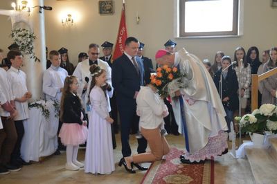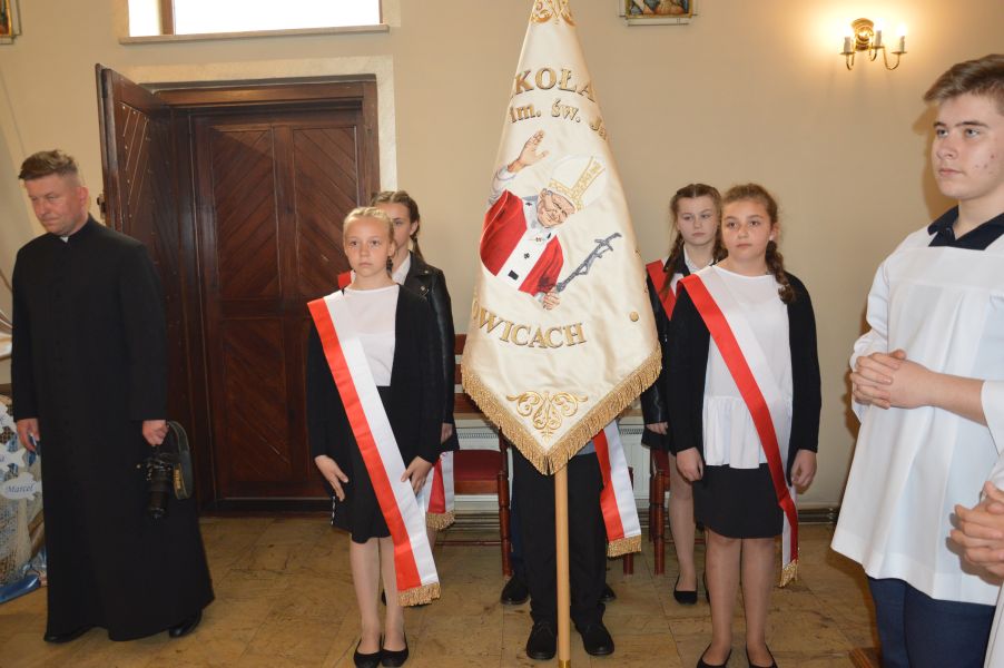 POCZET SZTANDAROWY NASZEJ SZKOŁY NA MSZY ŚWIĘTEJ Z UDZIAŁEM BISKUPA