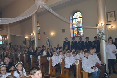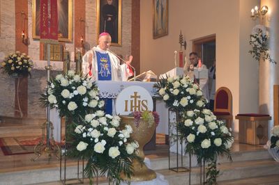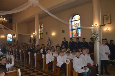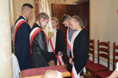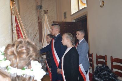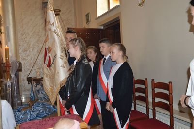 POCZET SZTANDAROWY NASZEJ SZKOŁY NA MSZY ŚWIĘTEJ Z UDZIAŁEM BISKUPA