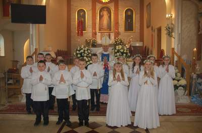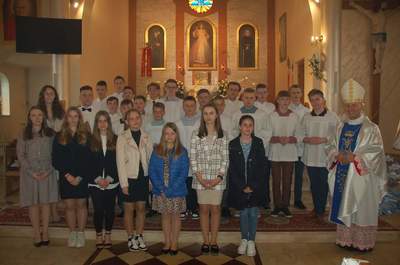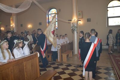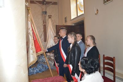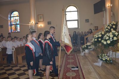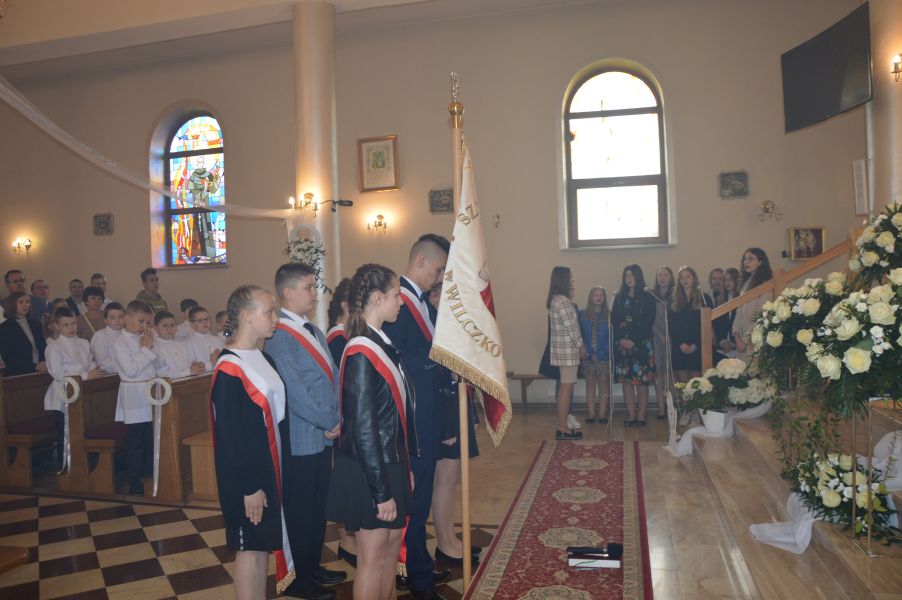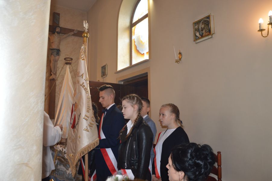 POCZET SZTANDAROWY NASZEJ SZKOŁY NA MSZY ŚWIĘTEJ Z UDZIAŁEM BISKUPA