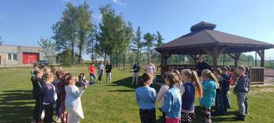 Spoza obwodu do szkoły uczęszczją dzieci z Grodziska, Mnina i Przegród.