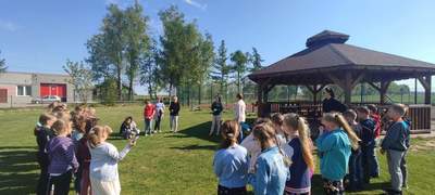 Spoza obwodu do szkoły uczęszczją dzieci z Grodziska, Mnina i Przegród.