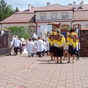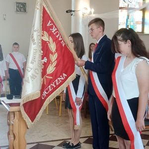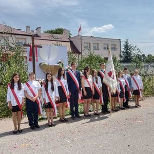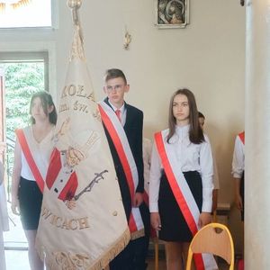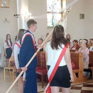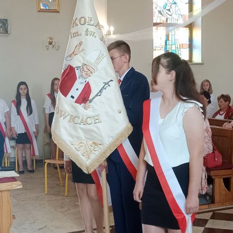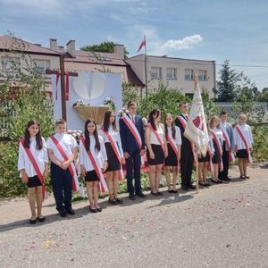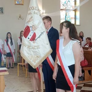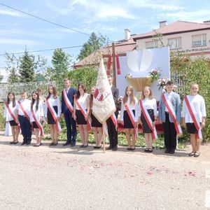 POCZET SZTANDAROWY NASZEJ SZKOŁY NA UROCZYSTOŚCI BOŻEGO CIAŁA