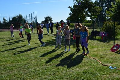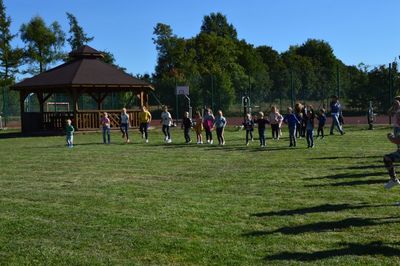 Spoza obwodu do szkoły uczęszczją dzieci z Grodziska, Mnina i Przegród.