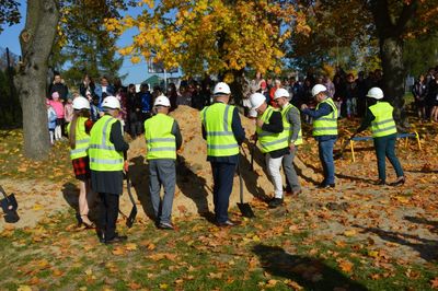 AKADEMIA Z OKAZJI DNIA EDUKACJI NARODOWEJ POŁĄCZONA Z SYMBOLICZNYM "WBICIEM ŁOPATY" POD BUDOWĘ SALI GIMNASTYCZNEJ