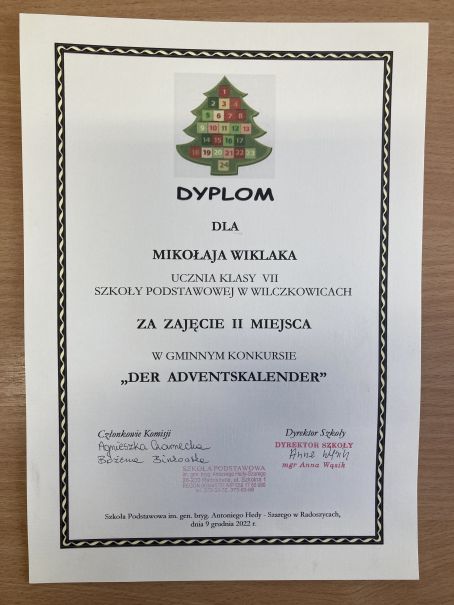 GMINNY KONKURS JĘZYKA NIEMIECKIEGO „DER ADVENTSKALEDER”