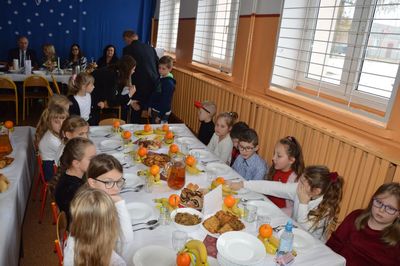 Spoza obwodu do szkoły uczęszczją dzieci z Grodziska, Mnina i Przegród.