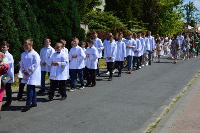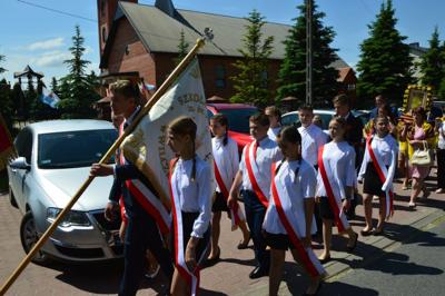 UDZIAŁ SZKOLNEGO POCZTU SZTANDAROWEGO W PROCESJI BOŻEGO CIAŁA