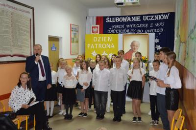 Spoza obwodu do szkoły uczęszczją dzieci z Grodziska, Mnina i Przegród.