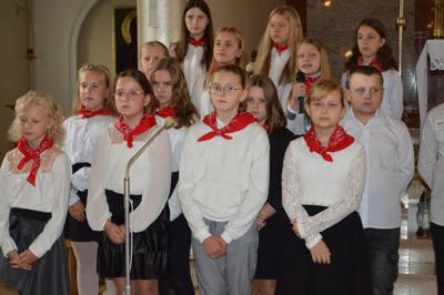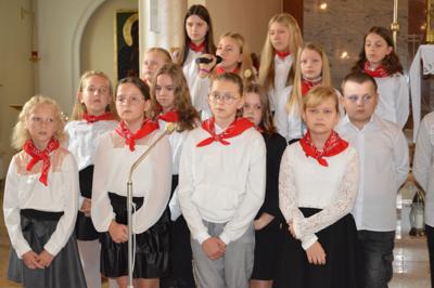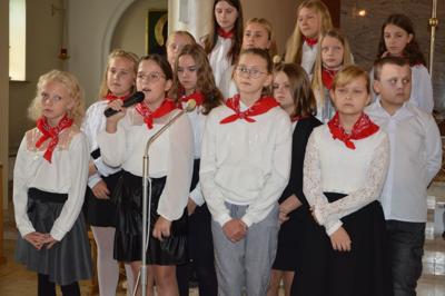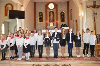 POCZET SZTANDAROWY SZKOŁY NA UROCZYSTOŚCI WSPOMNIENIA ŚW. JANA PAWŁA II