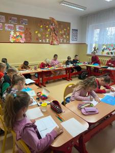 Spoza obwodu do szkoły uczęszczją dzieci z Grodziska, Mnina i Przegród.