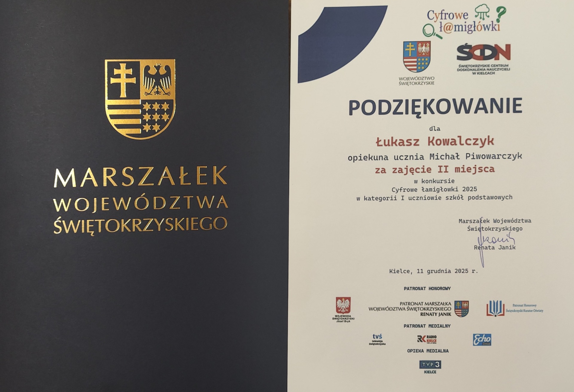 SUKCES UCZNIA NASZEJ SZKOŁY W KONKURSIE "CYFROWE ŁAMIGŁÓWKI 2025"