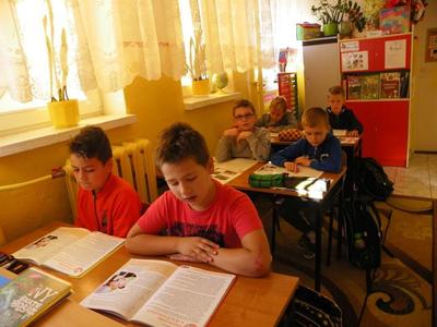 Spoza obwodu do szkoły uczęszczją dzieci z Grodziska, Mnina i Przegród.