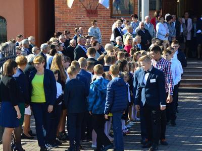 Spoza obwodu do szkoły uczęszczją dzieci z Grodziska, Mnina i Przegród.