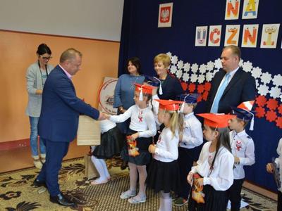 Spoza obwodu do szkoły uczęszczją dzieci z Grodziska, Mnina i Przegród.