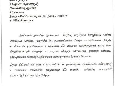 CERTYFIKAT SZKOŁY PROMUJĄCEJ ZDROWIE
