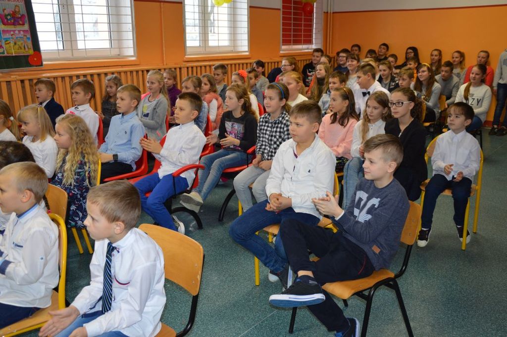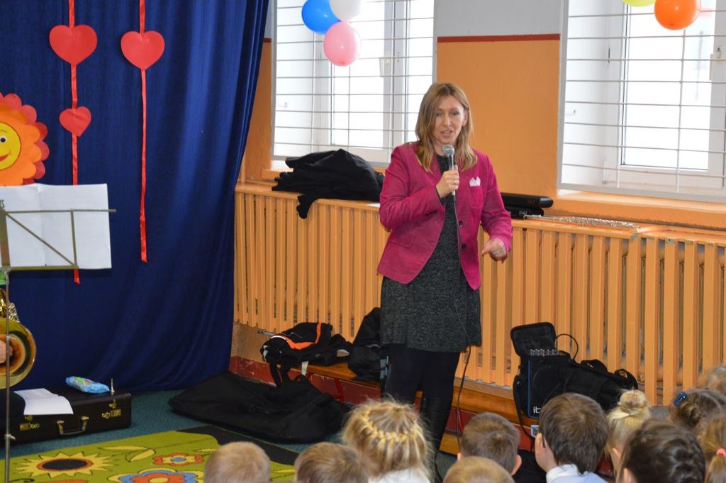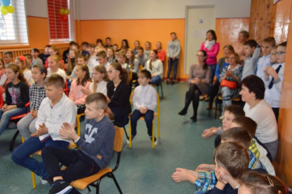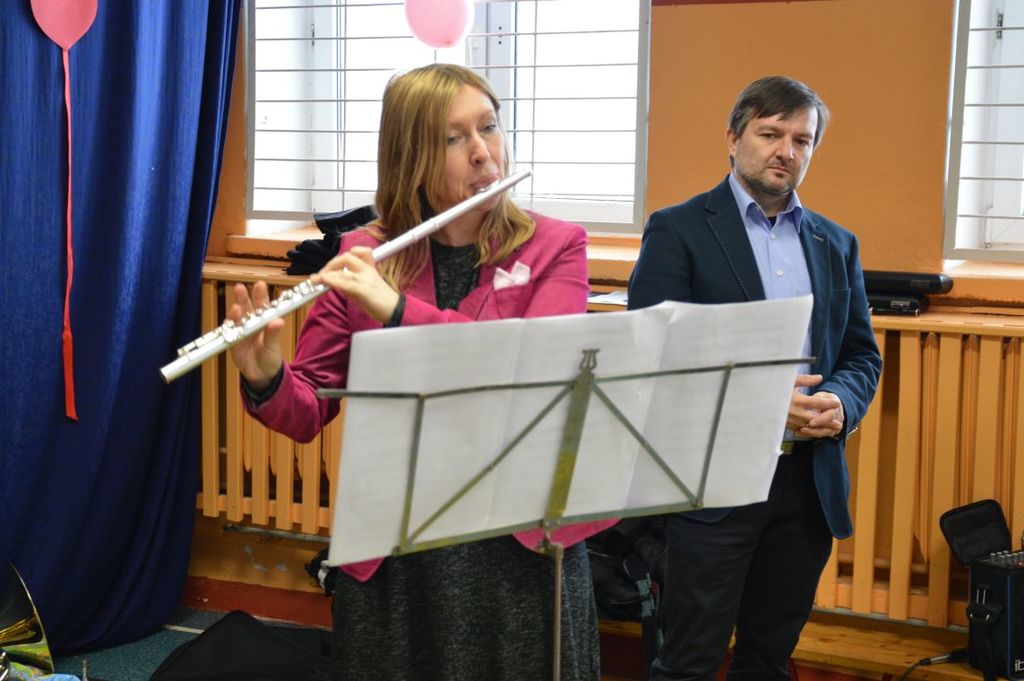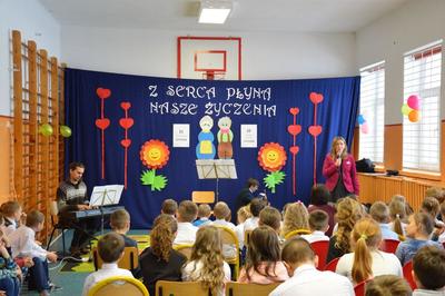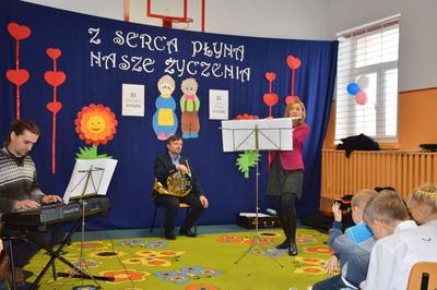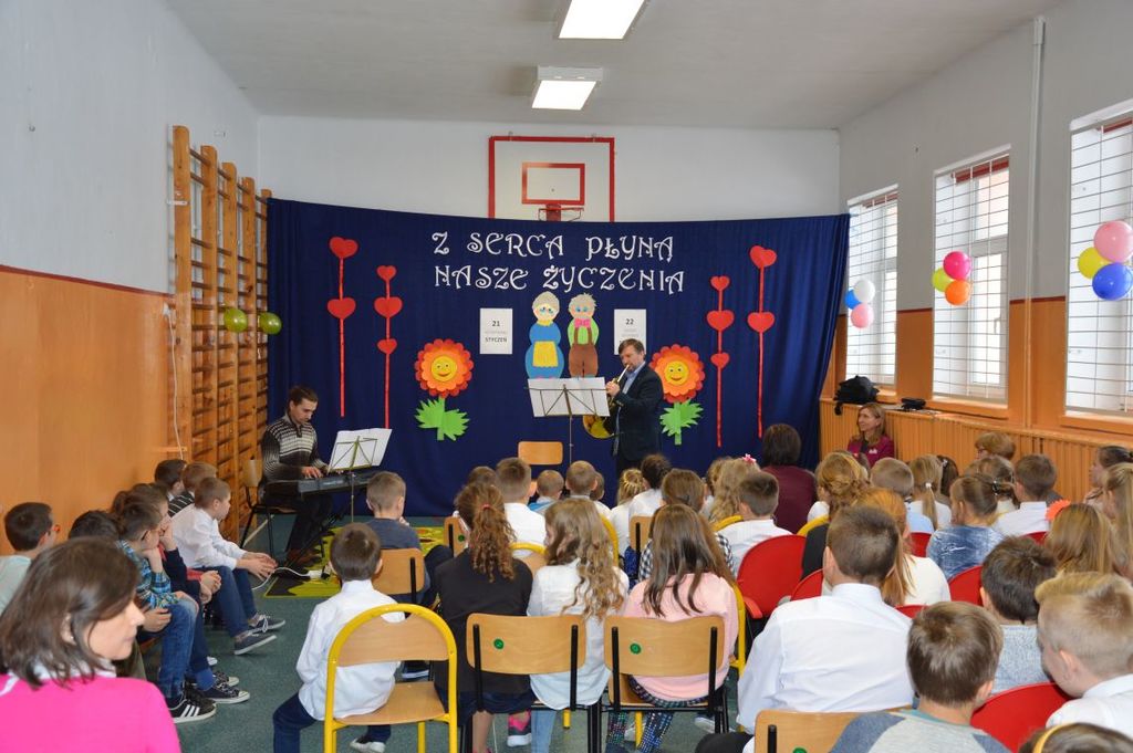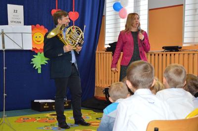 W dniu 22 stycznia 2018r. odbył się w szkole występ artystyczny Filharmonii Świętokrzyskiej w atmosferze roztańczonego cesarskiego Wiednia i słynnych noworocznych balów. Wszystko to za sprawą wybitnej kompozytorskiej rodziny Straussów – Johanna ojca i jego synów: Johanna II i Josefa oraz ich muzyki, która w okresie karnawału przekracza najdalsze granice geograficzne i rozbrzmiewając na całym świecie, cieszy ucho bywalców sal koncertowych pięknymi melodiami walców – na czele z ponadczasowym ,,Nad pięknym, modrym Dunajem”, a także skocznych, dowcipnych polek, marszów czy galopów. Artyści Filharmonii zaprezentowali uczniom słynne walce i polki Johana Straussa, które rozbrzmiewają nieomal na każdym karnawałowym koncercie. Popłynęły spokojne i piękne melodie. Dzieci poznały również budowę oraz dźwięk fletu sopranowego, fletu piccolo, waltorni zwanej pospolicie rogiem. Uczestnicy spotkania osobiście mogli spróbować zagrać na tych instrumentach. Koncert szkolny był bardzo ciekawy i pełen niezapomnianych wrażeń.