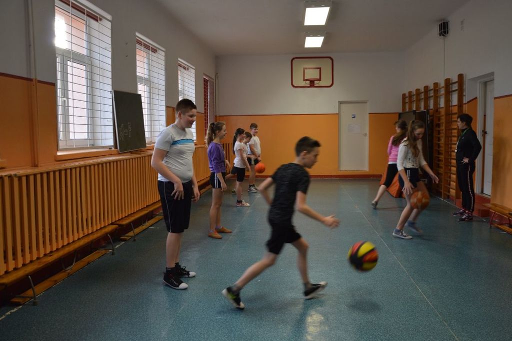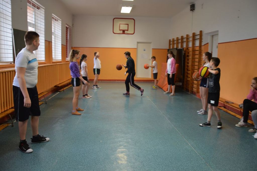 W dniu 30.01.2018r. szkoła włączyła się w akcję organizowaną w ramach "Świętokrzyskich Dni Sportu", który w tym roku obchodzony był pod hasłem "Świętokrzyski Dzień Koszykówki". W treningu wzięli udział uczniowie klas I-III oraz IV-VII. Celem spotkania było poznanie zasad poprawnego wykonania rzutu z miejsca, podań sprzed klatki piersiowej oraz kształtowanie koordynacji ruchowej i szybkości. Koszykówka to gra kontaktowa, bardzo dynamiczna, w której pokonuje się bardzo duże dystanse podzielone na krótkie odcinki. Rozgrywka obfituje w mnóstwo nagłych zwrotów akcji i dlatego trzeba mieć bardzo mocne nogi, aby stawy wytrzymały tego typu obciążenia. Jednak nogi to nie wszystko, ważna jest również siła mięśni tułowia. Dzięki wieku ćwiczeniom wykonywanym w ramach treningu uczniowie poznali specyfikę tej gry. Koszykówka bardzo mocno wpływa na kształtowanie charakteru młodego człowieka bowiem na boisku w czasie gry trzeba walczyć do końca i nie odpuszczać.Uczniowie kl. I-III poznali technikę rzutów do kosza poprzedzoną ćwiczeniami z kozłowania a klasy IV-VII doskonalili technikę rzutów, a nawet rozegrali krótkie mecze. Głównym celem była popularyzacja piłki koszykowej oraz zachęcanie uczniów do aktywnego spędzania czasu wolnego. Opiekunami akcji byli nauczyciele wychowania fizycznego w kl. I-III i IV-VII a koordynatorem p. Barbara Burak.