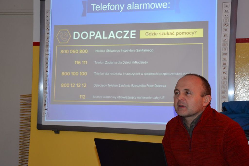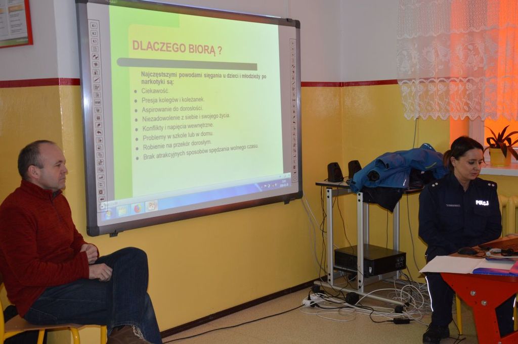 W dniu 28 lutego 2018 roku w Szkole Podstawowej w Wilczkowicach odbyło się szkolenie dla nauczycieli i rodziców, które zorganizowała Pani Joanna Ściegienna na temat: ,,Profilaktyka uzależnień od substancji psychotropowych, środków zastępczych i nowych substancji psychoaktywnych”. Szkolenie przeprowadzili: Pani Sylwia Sobczyńska z Powiatowej Komendy Policji w Końskich i Pan Marcin Szyposzyński z Powiatowej Stacji Sanitarno - Epidemiologicznej w Końskich. Na początku prowadzący wyjaśnili pojęcia związane z tematem szkolenia: substancje psychotropowe, środki zastępcze i substancje psychoaktywne, a potem omówili szczególnie trudny temat: narkotyki i dopalacze. W sposób ciekawy i interesujący przedstawili :