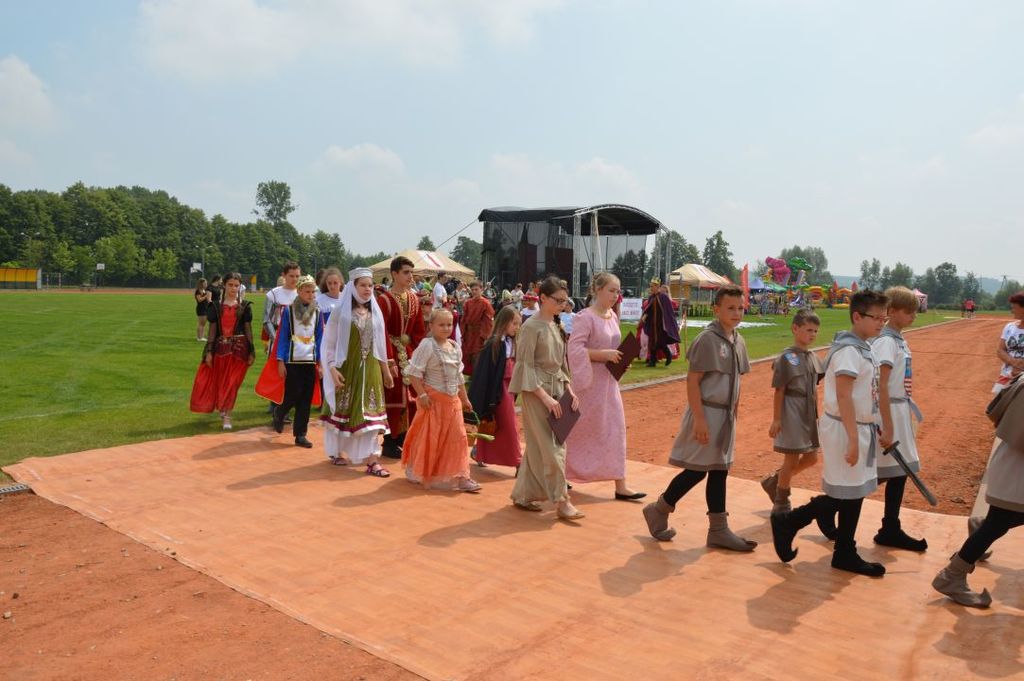 Uczniowie naszej szkoły uczestniczyli w dniu 03.06.2018 r. w uroczystościach związanych z obchodami odzyskania praw miejskich przez Radoszyce i Gminnego Dnia Dziecka. Impreza odbyła się na miejskim stadionie w niedzielne popołudnie. Po godzinie czternastej wyruszył barwny korowód uczniów ze szkół z gminy Radoszyce. Byli w nim i nasi podopieczni ubrani w stroje z czasów panowania Kazimierza Jagiellończyka. Dostojnych gości powitali: burmistrz Michał Pękala i przewodniczący Rady Miasta i Gminy Marian Jankowski. Po występach dzieci mogły wesoło się zabawić, gdyż przygotowano dla nich mnóstwo atrakcji. Wszyscy doskonale się bawili.