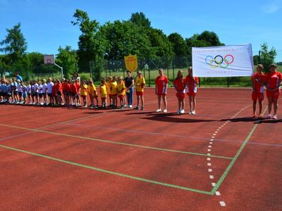 Zgodnie z przyjętym zwyczajem, w ramach uroczystego rozpoczęcia spartakiady, reprezentacje szkół Gminy Radoszyce w barwnych strojach przemaszerowały na boisko niosąc na czele pochodu flagę spartakiady. Po dotarciu do celu nastąpiło odśpiewanie hymnu małego sportowca Sport to zdrowie, następnie powitano wszystkie drużyny wraz z opiekunami i złożono obietnicę przestrzegania zasad gry fair play w czasie zmagań w kolejnych konkurencjach.
