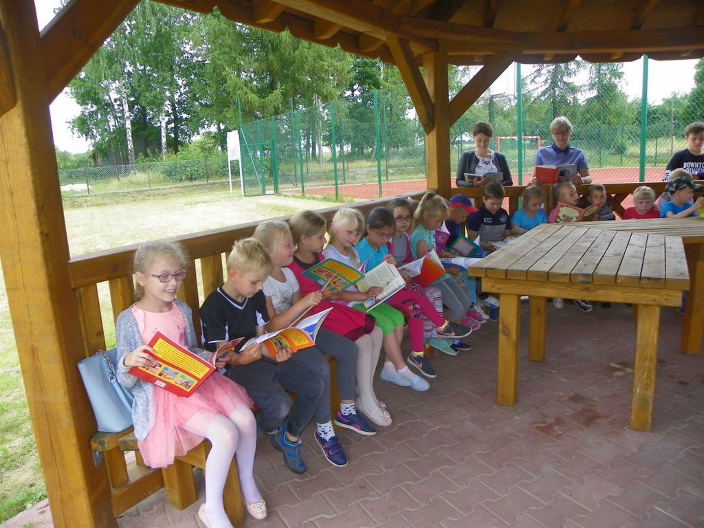 W dniu 8 czerwca nasza szkoła po raz kolejny włączyła się w ogólnopolską akcję czytelniczą "Jak nie czytam, jak czytam", której pomysłodawcą i głównym organizatorem jest redakcja "Biblioteki w szkole”. Akcja skierowana jest szczególnie do uczniów, którzy nie odkryli jeszcze radości z czytania. Niech książki przestaną się wreszcie kojarzyć z obowiązkowymi lekturami i karaniem za ich nieprzeczytanie. Niech młodzież zobaczy, że czyta najlepszy uczeń w klasie i ten najbardziej niegrzeczny; wychowawca klasy, dyrektor, nauczyciele i obsługa szkoły. Niech czytanie kojarzy się pozytywnie – jako relaks, czas wolny, rozrywka. Nasza społeczność szkolna zgromadziła się do wspólnego czytania na świeżym powietrzu - w altanie, na placu zabaw i przed budynkiem Miejsko- Gminnej Biblioteki Publicznej z filią w Wilczkowicach. W akcji wzięli udział uczniowie kl. 0 – VII wraz z dyrektorem, gronem pedagogicznym i pracownikami obsługi. Ponadto na korytarzu wychowawczyni klasy II wraz z uczniami przygotowała gazetkę "Czytanie łaczy" i prace plastyczne związane z tym tematem.