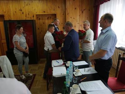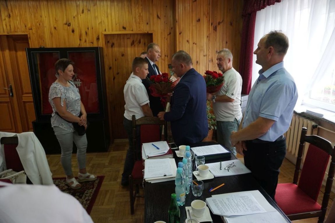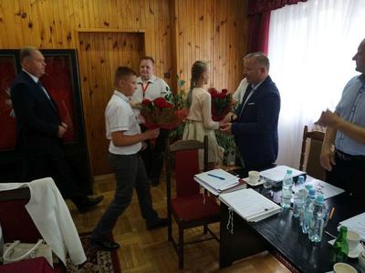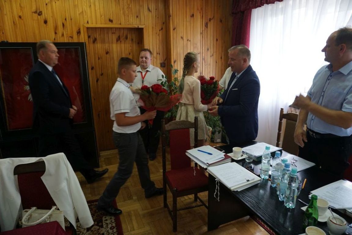 W dniu 21 sierpnia Rada Miejska w Radoszycach podjęła uchwałę nadającą Szkole Podstawowej w Wilczkowicach imię św. Jana Pawła II. Obecny na sesji Pan Dyrektor Zbigniew Kowalczyk podziękował Burmistrzowi Panu Michałowi Pękali, Przewodniczącemu Rady Miejskiej w Radoszycach Panu Marianowi Jankowskiemu oraz wszystkim Radnym za jednomyślne podjęcie uchwały nadającej imię św. Jana Pawła II naszej placówce. Jak podkreślił dyrektor, dla całej społeczności szkolnej i lokalnej to wielki zaszczyt, że szkoła będzie miała takiego patrona. Swoją wdzięczność i radość wyrazili także przedstawiciele uczniów: Daria Studzińska i Krzysztof Zbróg, którzy wręczyli kwiaty Panu Burmistrzowi i Panu Przewodniczącemu.