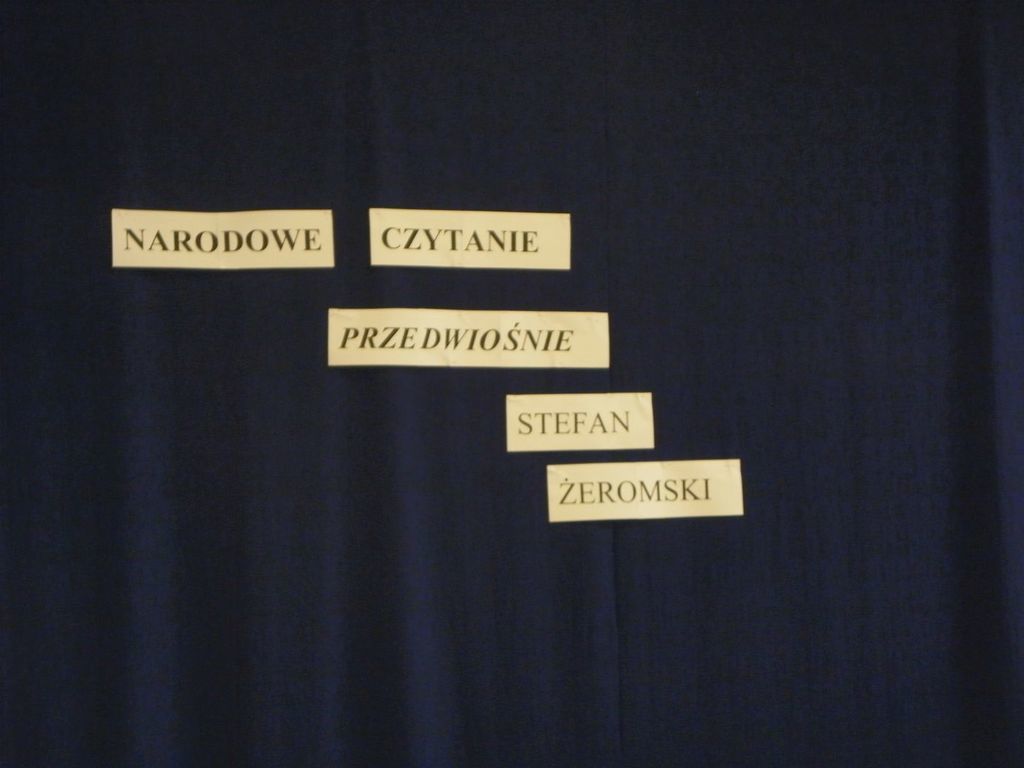 W dniu 10 września 2018 r. w Szkole Podstawowej im. św. Jana Pawła II w Wilczkowicach odbyło się wspólne czytanie tego utworu. Spotkanie rozpoczął Pan Dyrektor Zbigniew Kowalczyk krótką pogadanką o twórczości Stefana Żeromskiego. Uczniowie bez trudu wymieniali tytuły utworów tego znakomitego pisarza. Następnie zainicjował czytanie „Przedwiośnia”. Później powieść czytali kolejno: pani Barbara Janus - nauczycielka języka polskiego, Bartosz Gładych – uczeń klasy VI, Kamil Szustak – uczeń klasy VII, Sebastian Dębski – uczeń klasy VIII i pani Wiesława Zbróg – nauczycielka biblioteki i organizatorka ogólnopolskiej akcji Narodowego Czytania w naszej szkole.
