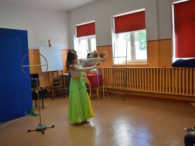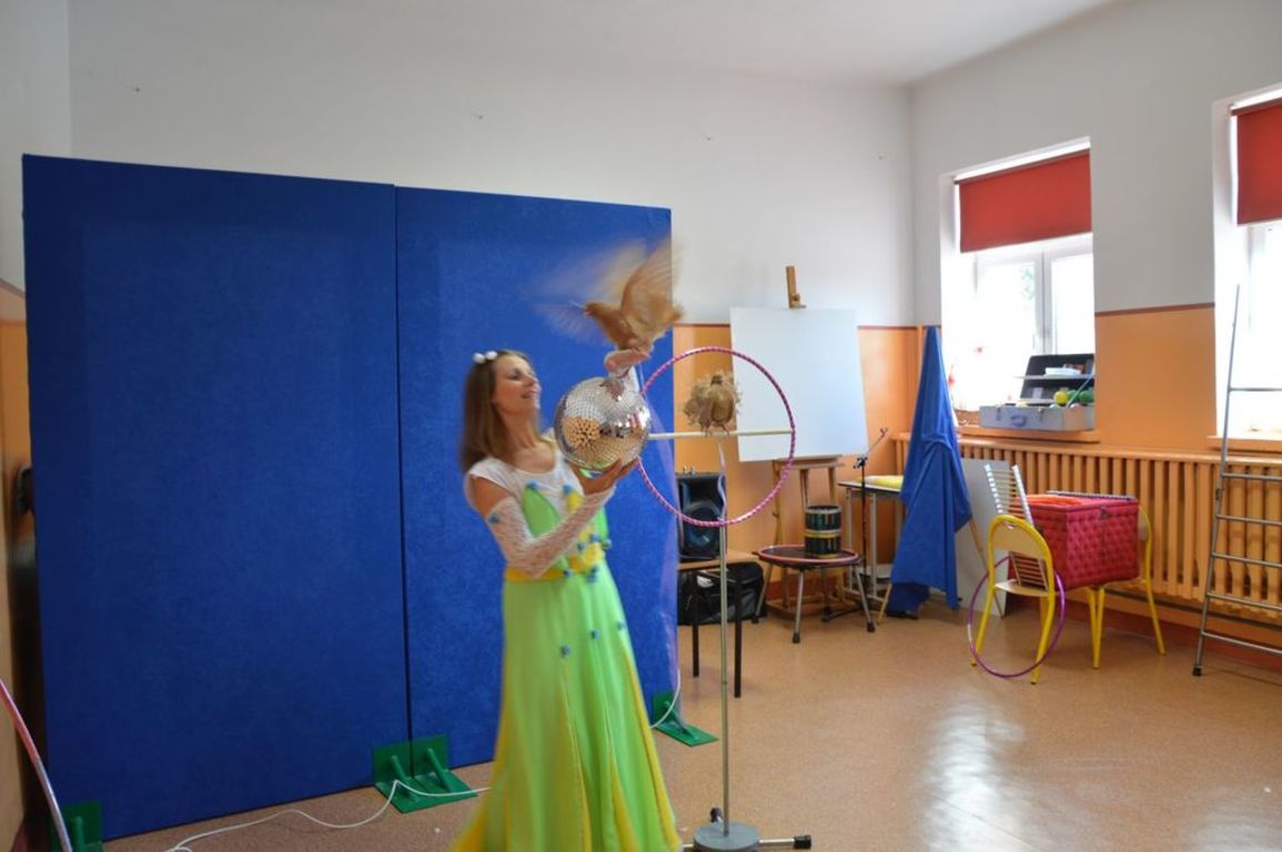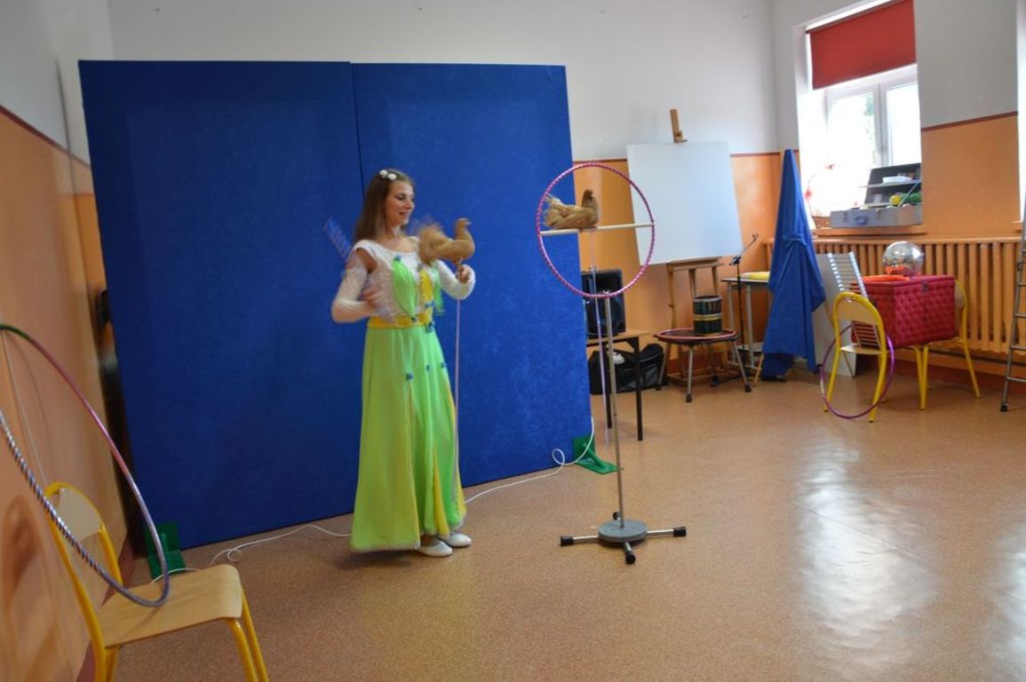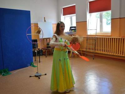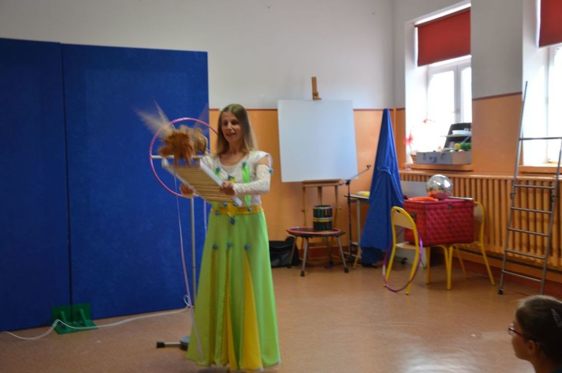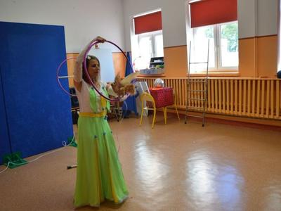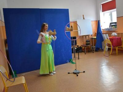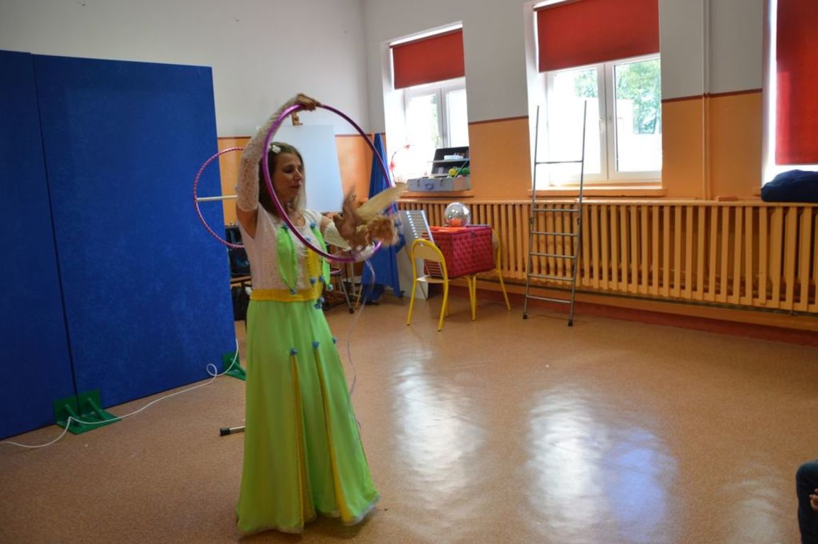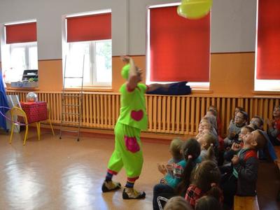 Dnia 28.09.2018 r. o godz. 10.00 mieliśmy niebywałą okazję gościć, na naszej sali gimnastycznej, artystów z cyrku SZOK, którzy sprawili, że wszyscy oglądający przedstawienie bawili się doskonale. Najważniejszą osobą był oczywiście klaun, który rozbawiał publiczność swoimi występami. Aplauz wybuchał, gdy na scenę, do wspólnej zabawy zapraszał dzieci. Nie zabrakło także chwil "grozy", kiedy pojawiła się treserka z wężem na ramionach. Okazało się szybko, że jest on niegroźny i chętnych do dotknięcia, czy potrzymania gada, było wielu. Obejrzeliśmy także popisy akrobatyczne i żonglerkę. Zachwyt najmłodszych uczniów wzbudził pokaz tresowanych gołębi. Nie zawiodła również sztuka iluzji i trików, a mianowicie czarowanie chusteczkami. Kręcenie hula hop okazało się również świetną zabawą dla śmiałków biorących udział w rozrywce.