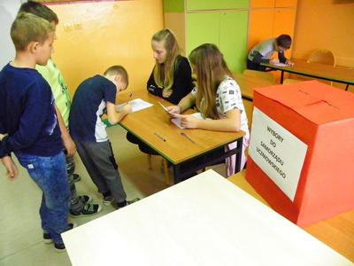 W dniu 29.X.2019r. w naszej szkole zostały przeprowadzone wybory do Samorządu Uczniowskiego. Poprzedzone one były tygodniową kampanią wyborczą, w trakcie której kandydaci prezentowali swoje programy. Komisja wyborcza w składzie: Daria Studzińska -dotychczasowa przewodnicząca SU, Marlena Szmit - zastępca SU czuwały nad prawidłowym przebiegiem głosowania a po jego zakończeniu dokonała podliczenia głosów. Nauczycielem nadzorującym przebieg wyborów był opiekun SU Anna Majchrzak. W głosowaniu wzięło udział 110 osób (nauczyciele oraz uczniowie klas I-VIII). Wśród wszystkich oddanych głosów 1 był nieważny.