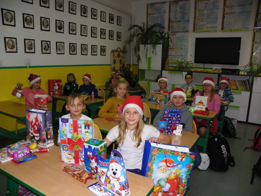 6 grudnia 2018 r. w naszej szkole panowała szczególna atmosfera, gdyż zgodnie z tradycją goszczono świętego Mikołaja. Dotarł on do szkoły z workiem prezentów, co nasi uczniowie przyjęli bardzo entuzjastycznie. Mikołaj wręczał osobiście słodkości dzieciom, począwszy od oddziału przedszkolnego. Także Pan Dyrektor nie zapomniał o swoich podopiecznych i w ten magiczny dzień wszystkich bez wyjątku obdarował słodkościami. Tego dnia o uczniach naszej szkoły nie zapomnieli Państwo Piotrowscy fundując każdemu dziecku słodką niespodziankę.