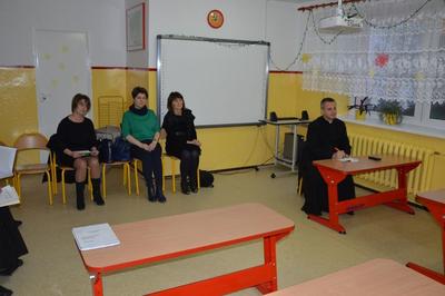 W dniu 11 grudnia 2018r. o godz. 15.00 w naszej szkole została przeprowadzona lekcja otwarta dla katechetów dekanatu Radoszyckiego. Katechezę przeprowadziła nauczycielka Krystyna Kowalczyk z udziałem uczniów klasy II. Na spotkanie przybyli zaproszeni goście: księża oraz katecheci z dekanatu, którzy obserwowali przebieg katechezy. Temat katechezy brzmiał: ,,Pan Jezus objawia się Mędrcom”. Uczniowie aktywnie brali udział w zajęciach: czytali fragmenty Pisma świętego, omawiali jego treść, poznając w ten sposób odległą historię narodzenia Jezusa. Po zakończeniu lekcji otwartej odbyło się jej omówienie. Obserwatorzy, w swoich wypowiedziach, pochwalili uczniów za duże zaangażowanie na lekcji oraz swobodę i naturalność w prowadzeniu zajęć przez nauczycielkę. Na zakończenie lekcji słowa podziękowania skierował wizytator diecezji Radomskiej ks. dr Sławomir Molendowski. Uczniowie za udział w lekcji otrzymali słodki poczęstunek przekazany od pani Metodyk Moniki Wydry. Rodzicom serdecznie dziękujemy za przywiezienie dzieci do szkoły i ich odbiór.