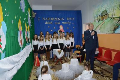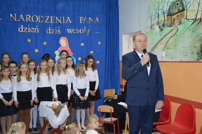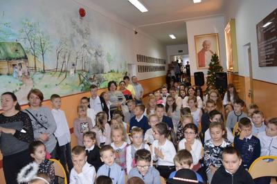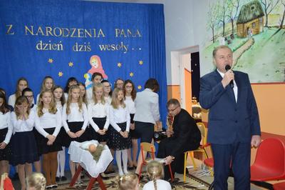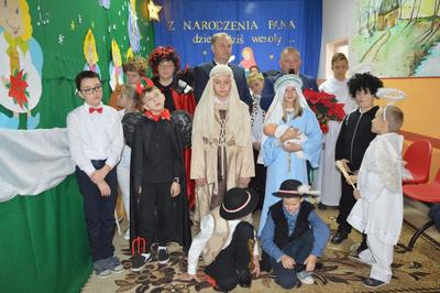 Tradycyjnie przed Świętami Bożego Narodzenia odbyły się w naszej szkole Jasełka. Na samym początku spotkania Dyrektor szkoły p. Zbigniew Kowalczyk przywitał obecnych gości: p. Michała Pękalę - Burmistrza Miasta i Gminy Radoszyce, p. Ewelinę Ptak – Kierownika Centrum Usług Wspólnych, ks. Przemysława Ilnickiego - Proboszcza Parafii Wilczkowice, rodziców, nauczycieli, uczniów. Dziewczynki z oddziału przedszkolnego pod kierunkiem p. Magdaleny Oko zaprezentowały taniec do muzyki z filmu „Dziadek do orzechów”. Uczniowie klas I-VIII przygotowali przedstawienie nawiązujące do wydarzeń sprzed ponad 2000 tysięcy lat. Dzieci wcieliły się w role Maryi i Józefa, Trzech Króli, pastuszków, archaniołów, aniołków, diabełków, złego Heroda i śmierci. Kluczową rolę odegrał nawrócony aniołek - Jaśko Rokita. Całość uświetniały pastorałki i kolędy wykonywane przez uczennice naszej szkoły pod kierunkiem ks. Przemysława, grającego na gitarze. Na zakończenie Jasełek uczennica Elżbieta Kotras złożyła życzenia z okazji nadchodzących świąt, nawiązujące do niedawno obchodzonej, setnej rocznicy Odzyskania przez Polskę Niepodległości oraz nadania naszej szkole imienia św. Jana Pawła II. Po występie głos powtórnie zabrał Dyrektor szkoły, dziękując dzieciom i nauczycielom za udane przedstawienie. Pan Burmistrz pogratulował uczniom talentu aktorskiego oraz złożył wszystkim zgromadzonym świąteczne życzenia.
