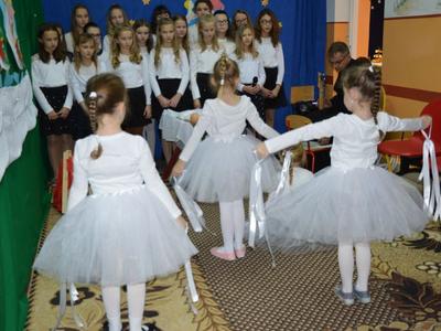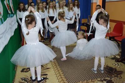 Dekorację korytarza przygotowały p. Alina Dymińska i p. Joanna Ściegienna, część artystyczną: p. Marianna Szczepańska i p. Anna Majchrzak a oprawę muzyczną ks. Przemysław Ilnicki. Pani Krystyna Kowalczyk ułożyła dla uczniów życzenia świąteczne.