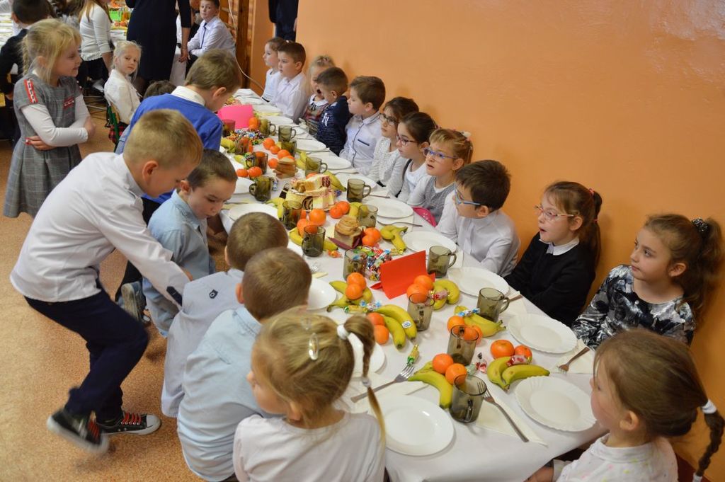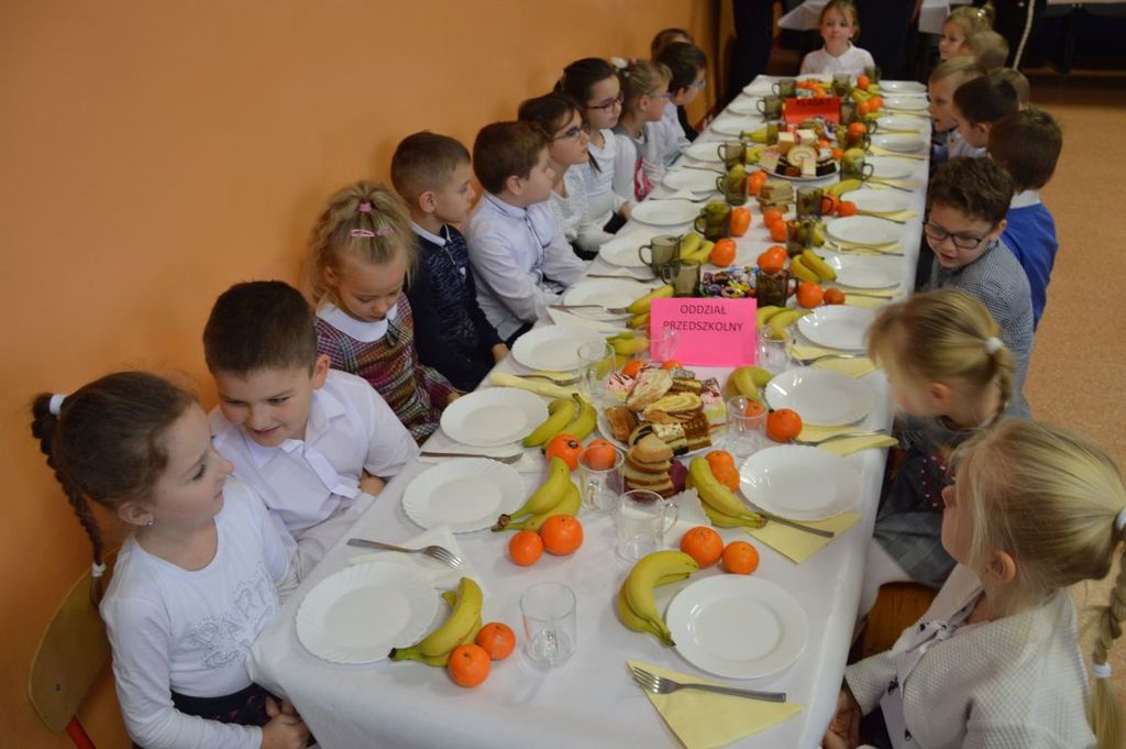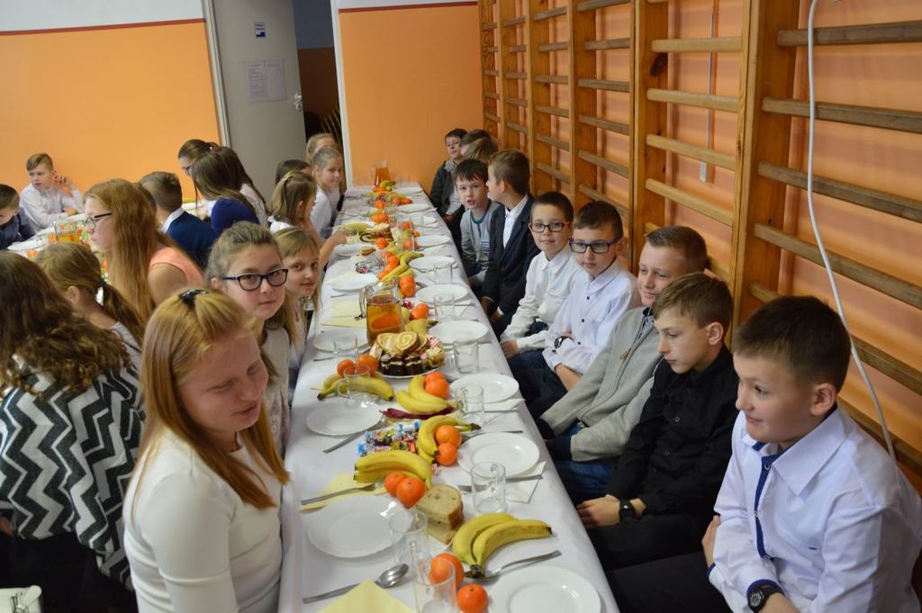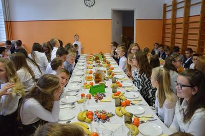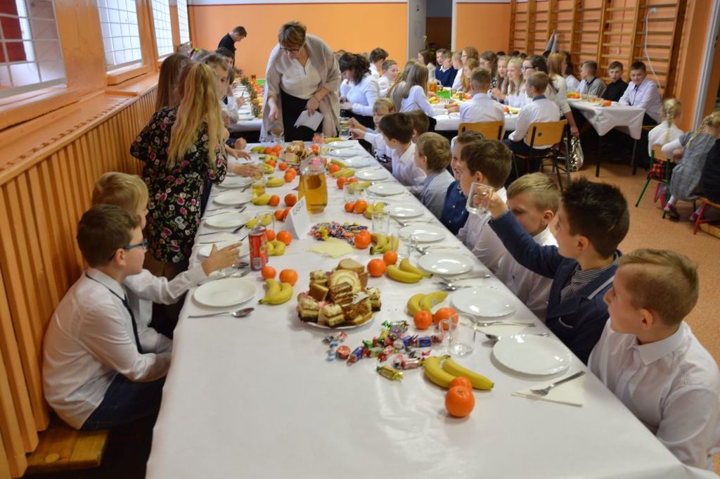 Pani kucharce Marzannie Bieleckiej i Pani Agnieszce Maciążek dziękujemy za trud włożony w przygotowanie potraw, a rodzicom uczniów za pomoc w roznoszeniu posiłków.
