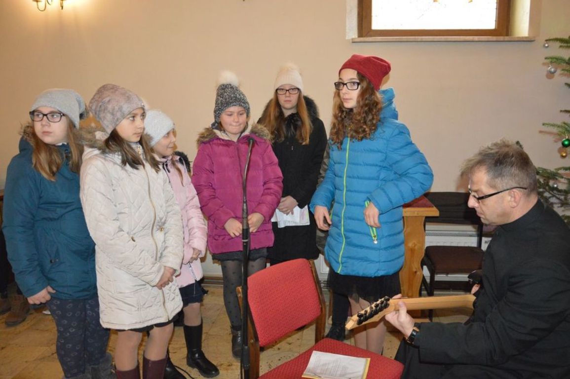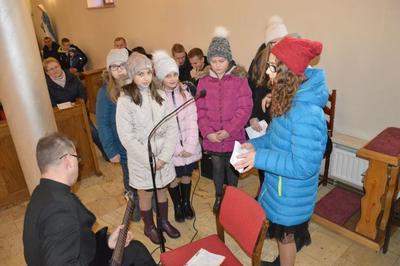 Uczennica Elżbieta Kotras zakończyła Jasełka życzeniami i przesłaniem do wiernych, napisanymi przez Panią Krystynę Kowalczyk, nawiązującymi do niedawno obchodzonej, setnej rocznicy Odzyskania przez Polskę Niepodległości oraz nadania naszej szkole imienia św. Jana Pawła II. Zgromadzeni parafianie swoje uznanie dla młodych artystów wyrazili gromkimi brawami. Na zakończenie ksiądz proboszcz Przemysław Ilnicki złożył serdeczne podziękowanie za występ uczniom, Panu Dyrektorowi Zbigniewowi Kowalczykowi oraz nauczycielkom: Pani Annie Majchrzak i Pani Mariannie Szczepańskiej.