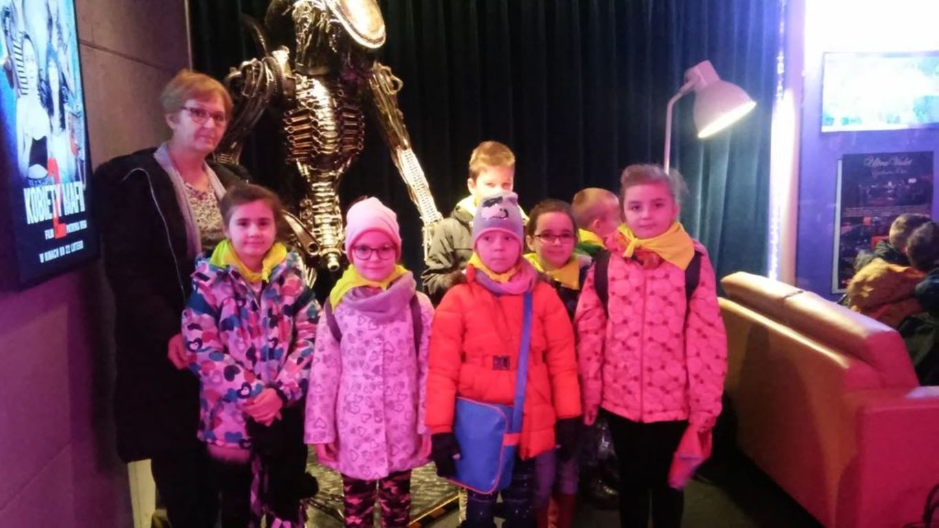 W dniu 15 lutego uczniowie naszej szkoły udali się do kina Helios w Kielcach. Klasy 0-VI obejrzały poruszającą historię Belli, psa, który pokonał 400 mil, by odnaleźć swego ukochanego właściciela. Był to film na podstawie jednej z bestsellerowych książek W. Bruce’a Camerona, najsłynniejszego pisarza snującego opowieści o zwierzętach. Wcześniej jednak do sali kinowej przybył zaproszony gość- przewodnik z psem. Przewodnik opowiedział dzieciom na czym polega praca psów oraz czym dokładnie się one zajmują. Następnie odbyła się pogadanka na temat zagrożeń mogących wynikać z kontaktów ze zwierzętami oraz na temat bezpieczeństwa. Uczniowie chętnie wysłuchali prelekcji przewodnika, a na zakończenie mogli zobaczyć elementy tresury psa oraz przyjrzeć się jak „Riko” wykonuje wydawane polecenia.