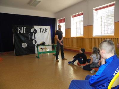 W czasie spektaklu profilaktycznego panowała miła i życzliwa atmosfera. Dzieci bardzo zaangażowały się emocjonalnie w akcję. Myślimy, że tematyka pozostanie w głowach uczniów na długo i wyciągną z niej naukę dla siebie. Bardzo dobra gra aktorów i umiejętności nawiązywania przez nich kontaktu z młodzieżą sprawiły, że spektakl był ciekawy i spotkał się z ogromnym zainteresowaniem ze strony uczniów.