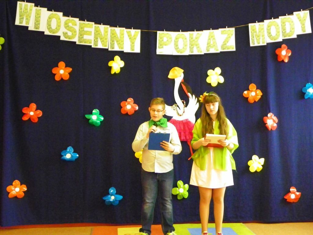Pokaz odbył się 21.03.2019 r. i został przygotowany przez panie Magdalenę Oko i Krystynę Kowalczyk. W tym specjalnym wydarzeniu wzięli udział modele i modelki w dwóch kategoriach, klasy 0 – I oraz klasy IV-VIII. Na specjalnie przygotowanym wybiegu dzieci przy dźwiękach muzyki i zapowiedzi prowadzących, Patrycji Podstawki i Kamila Mączyńskiego, zaprezentowały niepowtarzalne, kolorowe, pełne pomysłowości kreacje. Następnie uczniowie klasy I pod kierunkiem pani Joanny Staciwy zaśpiewali piosenkę o tematyce wiosennej oraz przedstawili skupiającą uwagę, żywą i pomysłową zabawę rytmiczną. Uroczystość zakończyła się symbolicznym spaleniem Marzann, które przygotowały: uczennica kl. VI Zuzanna Maciążek oraz Daniel Staciwa z oddziału przedszkolnego. Cała społeczność szkolna na dobre pożegnała zimę i z uśmiechem na twarzy powitała wiosnę. Tym radosnym akcentem zakończyliśmy uroczystość.