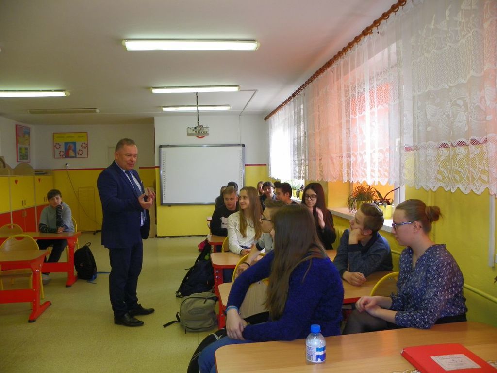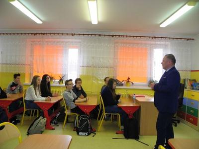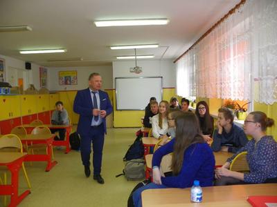 W dniu 28 marca 2019 r. w szkole na zajęciach z wiedzy o społeczeństwie w kl. VIII gościł włodarz Miasta i Gminy Radoszyce pan Michał Pękala. Opowiadał uczniom o swojej pracy oraz o pracy Urzędu Gminy, inwestycjach i planach przewidzianych na najbliższe lata. Uczniowie dowiedzieli się, iż burmistrz jest organem wykonawczym w jednostce samorządowej, w której siedziba władz znajduje się w mieście położonym na terytorium tej gminy. Jako przedstawiciel władzy wykonawczej na terenie samorządu wykonuje uchwały rady i realizuje uchwalony przez nią budżet. Ma także decydujący wpływ na mianowanie i odwoływanie osób zarządzających spółkami miasta i podległymi instytucjami.