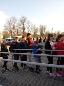W dniu 05.04.2019 r. 35 uczniów z klas V- VIII pod opieką nauczycielek: Krystyny Kowalczyk, Anny Majchrzak i Joanny Ściegiennej oraz pani Eweliny Ptak - Kierownika Centrum Usług Wspólnych w Radoszycach, pana dyrektora Zbigniewa Kowalczyka i pana Krzysztofa Buraka w ramach ogólnopolskiej akcji ,,WIĘCEJ SPORTU W REALU” na zaproszenie Fundacji Sportowcy Dzieciom oraz Korony Kielce udali się do Kielc na Stadion Suzuki Arena, gdzie odbył się Mecz Ekstraklasy o Mistrzostwo Polski pomiędzy Koroną Kielce a Zagłębiem Lubin.