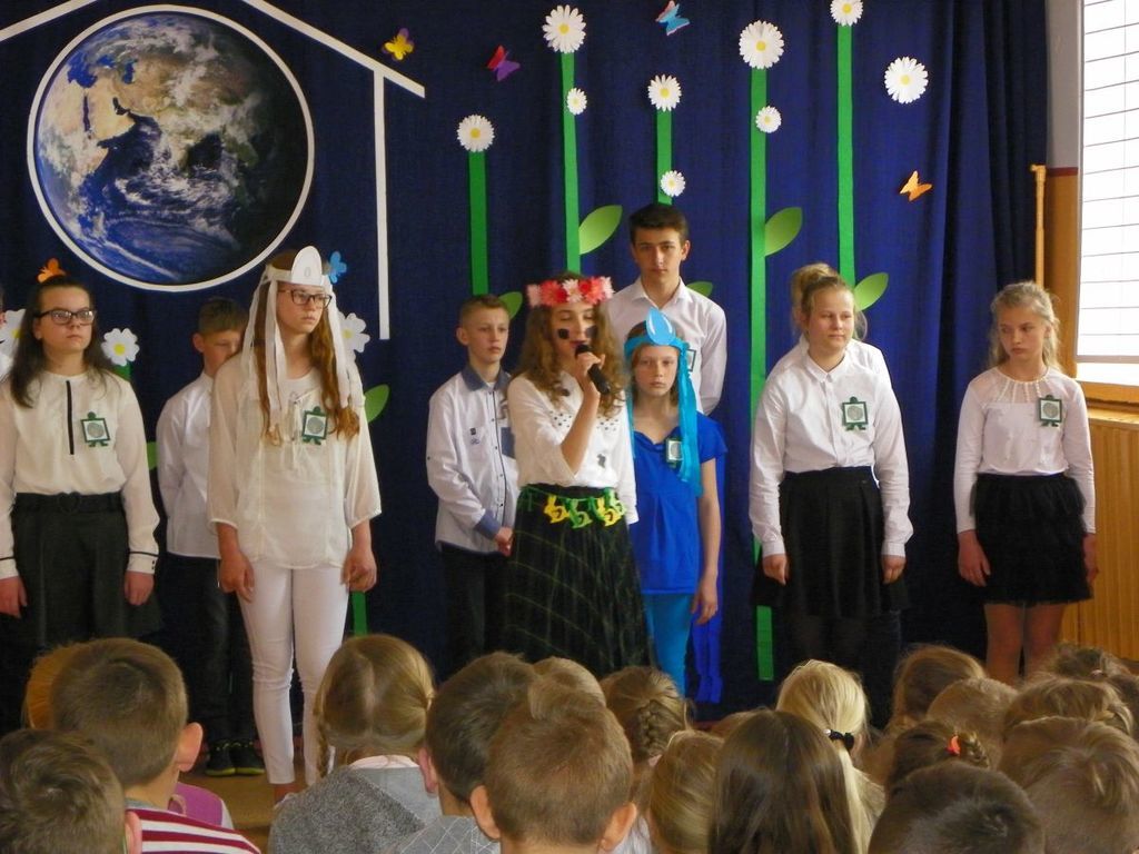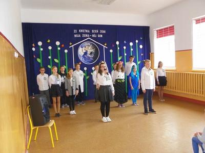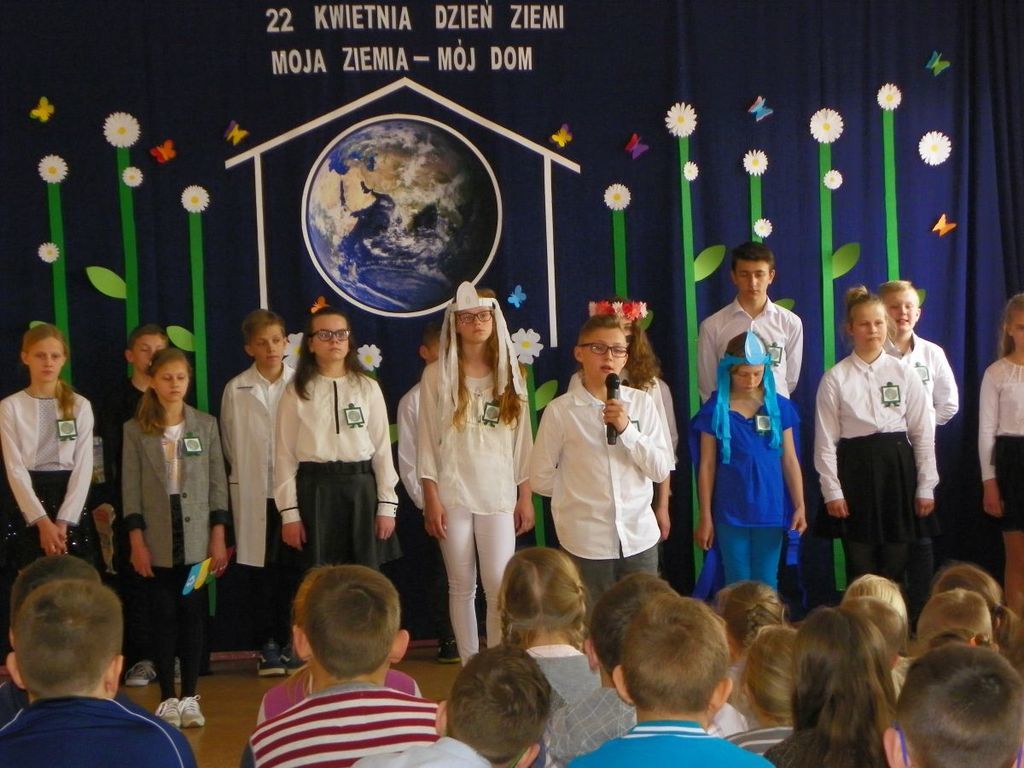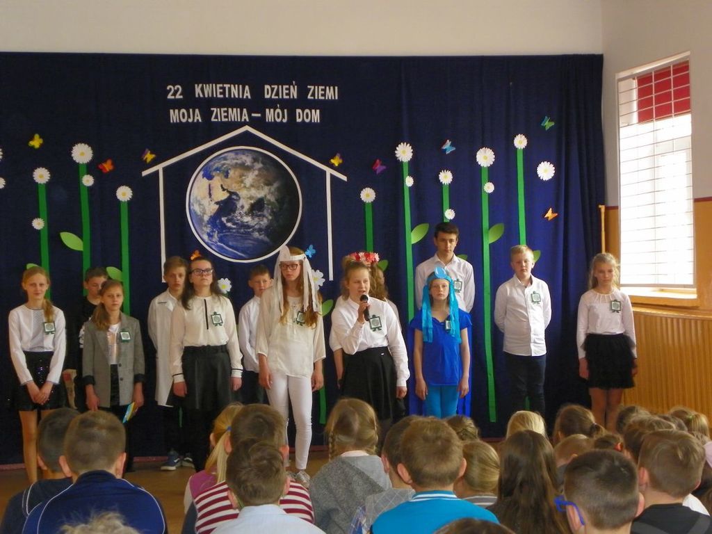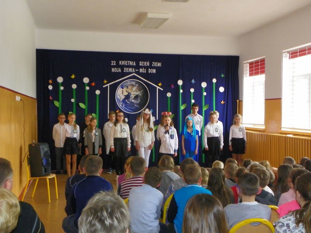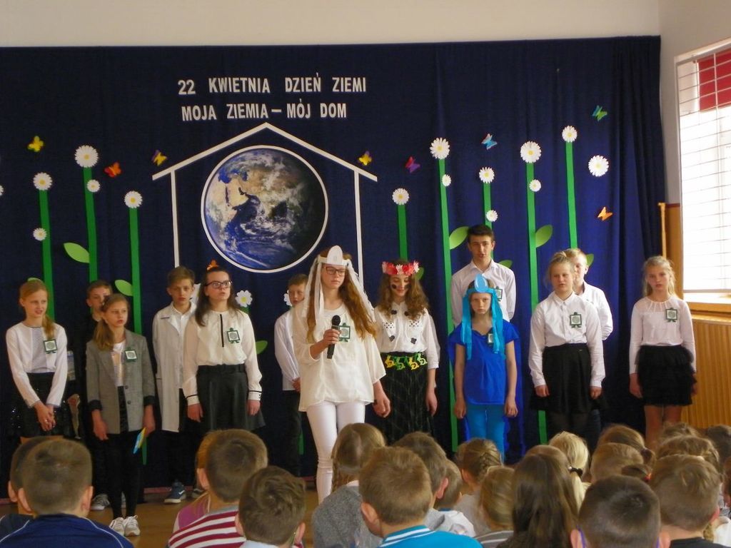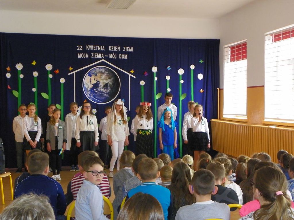 12 kwietnia odbyła się uroczysta akademia z okazji Dnia Ziemi. Przedstawienie pt."Moja Ziemia-Mój Dom" przygotowali uczniowie kl.VI wraz z nauczycielką Dorotą Kołodziejczyk. W dzisiejszych czasach przywiązuje sie szczególne znaczenie do problemu ekologii, rozumianej jako ochrona środowiska naturalnego przed negatywnymi skutkami działalności człowieka. Uczniowie pochylili się nad losem nazej planety. Poruszone problemy mają zachęcić do dbania o swoje najbliższe środowisko. Przedstawienie uświetniły piosenki pt. "S.O.S dla Ziemi" oraz "Planeta wyspa zielona" w wykonaniu Marysi Szczesniak i Zuzi Maciążek.
