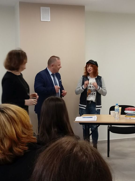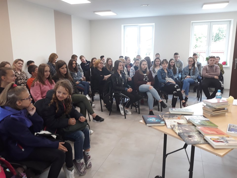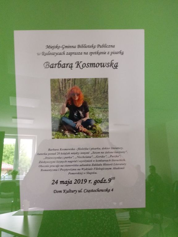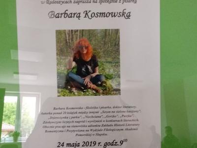 W dniu 24.05.2019 r. na zaproszenie Miejsko-Gminnej Biblioteki Publicznej w Radoszycach uczniowie z terenu gminy Radoszyce udali się do Domu Kultury w Radoszycach na spotkanie z pisarką panią Barbarą Kosmowską. Także i nasi uczniowie z klasy VII i VIII wzięli udział w tym ciekawym wydarzeniu. Pisarka, opowiadając o swojej twórczości, przybliżyła młodzieży tematykę kilku swoich książek skierowanych do nich. Oto ich tytuły: Dziewczynka z parku, Buba, Buba sezon ogórkowy, Pozłacana rybka, Niechciana, Samotni.pl, Teren prywatny. Pani Barbara Kosmowska jest autorką 30 książek napisanych z przeznaczeniem dla młodzieży i dorosłych. Pisarka za swą twórczość otrzymała wiele prestiżowych nagród i wyróżnień-jest laureatką Ogólnopolskiego Konkursu Literackiego Dziennik Polskiej Bridget Jones (książka Teren prywatny) i zwyciężczynią w ogólnopolskim konkursie na powieść dla dzieci i młodzieży pod hasłem Uwierz w siłę wyobraźni (książka Buba). Zaś utwór Pozłacana rybka zdobył nagrodę literacką Książka Roku 2007 przyznawaną przez Polską Sekcję IBBY oraz została nagrodzona w Konkursie Literackim im. Astrid Lindgren. Uczniowie byli zafascynowani spotkaniem z pisarką.