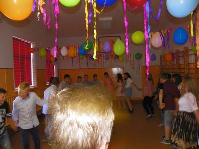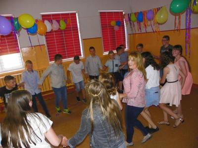 Dnia 05. 06. 2019 r. w upalne popołudnie, w naszej szkole odbyła się zabawa ósmoklasistów, podczas której uczniowie klas VI-VIII świetnie bawili się przy znakomitej grze zespołu muzycznego „ARKAN”. Już od progu drzwi szkolnych dało się słyszeć dźwięki świetnej muzyki. Cała impreza zaczęła się odtańczeniem przez uczniów klasy ósmej i reprezentantów klasy siódmej poloneza, który poprzedzał zabawę uczniowską.