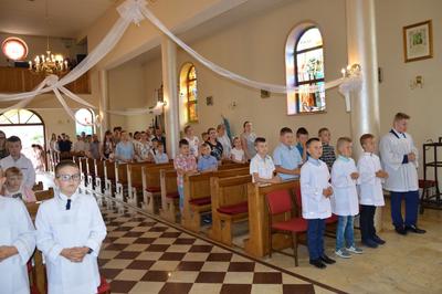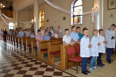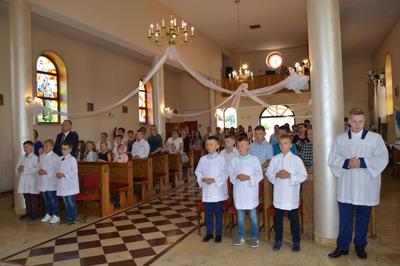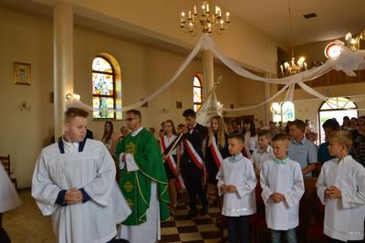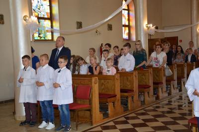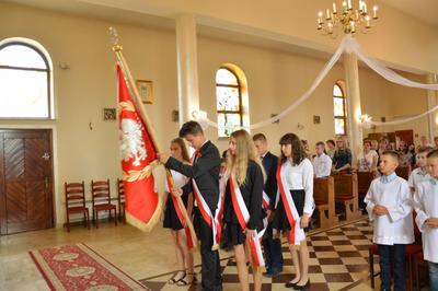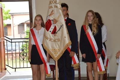W dniu 19 czerwca 2019 roku w naszej szkole miało miejsce uroczyste zakończenie roku szkolnego 2018/2019 oraz pożegnanie uczniów klas ósmej – tegorocznych absolwentów Szkoły Podstawowej im. św. Jana Pawła II w Wilczkowicach. Uroczystość rozpoczęła się Mszą Świętą, podczas której homilię, skierowaną do młodych, wygłosił ksiądz proboszcz Przemysław Ilnicki. Potem Dyrekcja, Grono Pedagogiczne i Uczniowie wspólnie ze swoimi Rodzicami przenieśli się do szkolnych murów, by tam z rozrzewnieniem powspominać lata spędzone w szkole oraz pożegnać swoich nauczycieli i rówieśników. Swoją obecnością podczas uroczystości zaszczycili nas: Burmistrz Miasta i Gminy Radoszyce Pan Michał Pękala, Kierownik Usług Wspólnych w Radoszycach Pani Ewelina Ptak, ksiądz proboszcz Przemysław Ilnicki oraz Przewodniczący Rady Rodziców przy Szkole Podstawowej im. św. Jana Pawła II w Wilczkowicach Pan Dawid Zbróg.