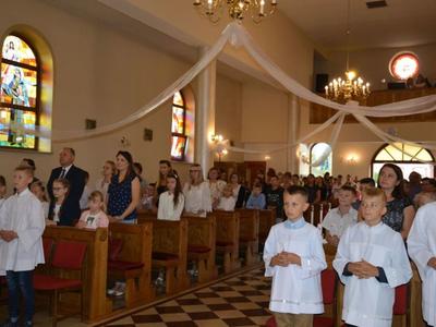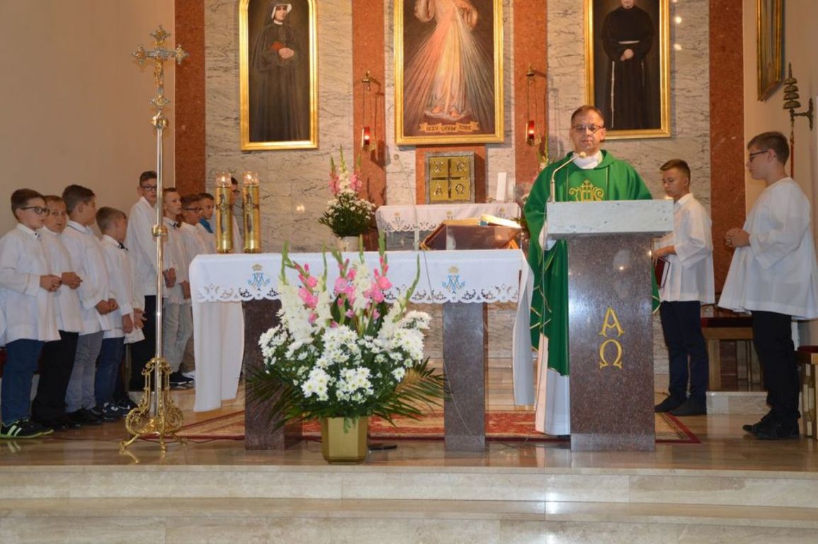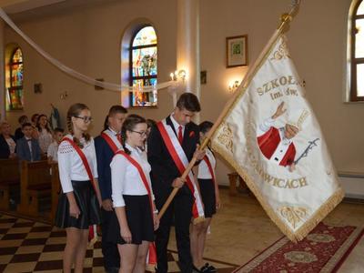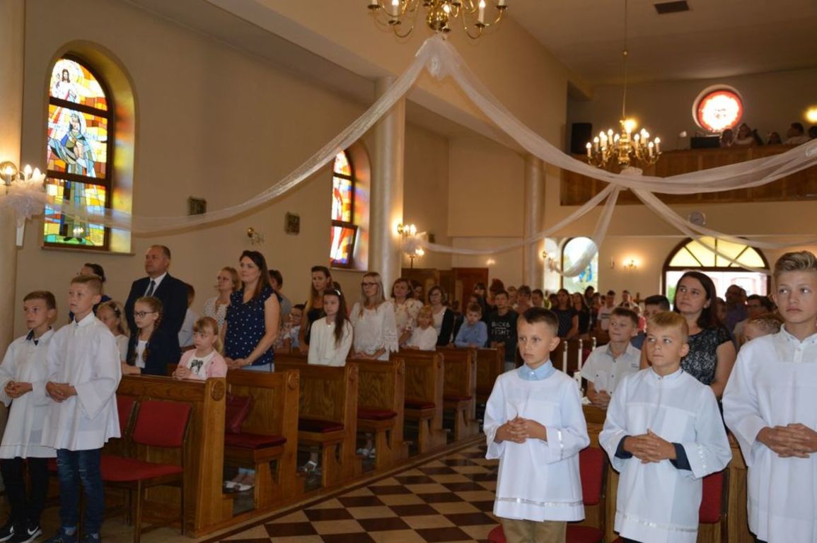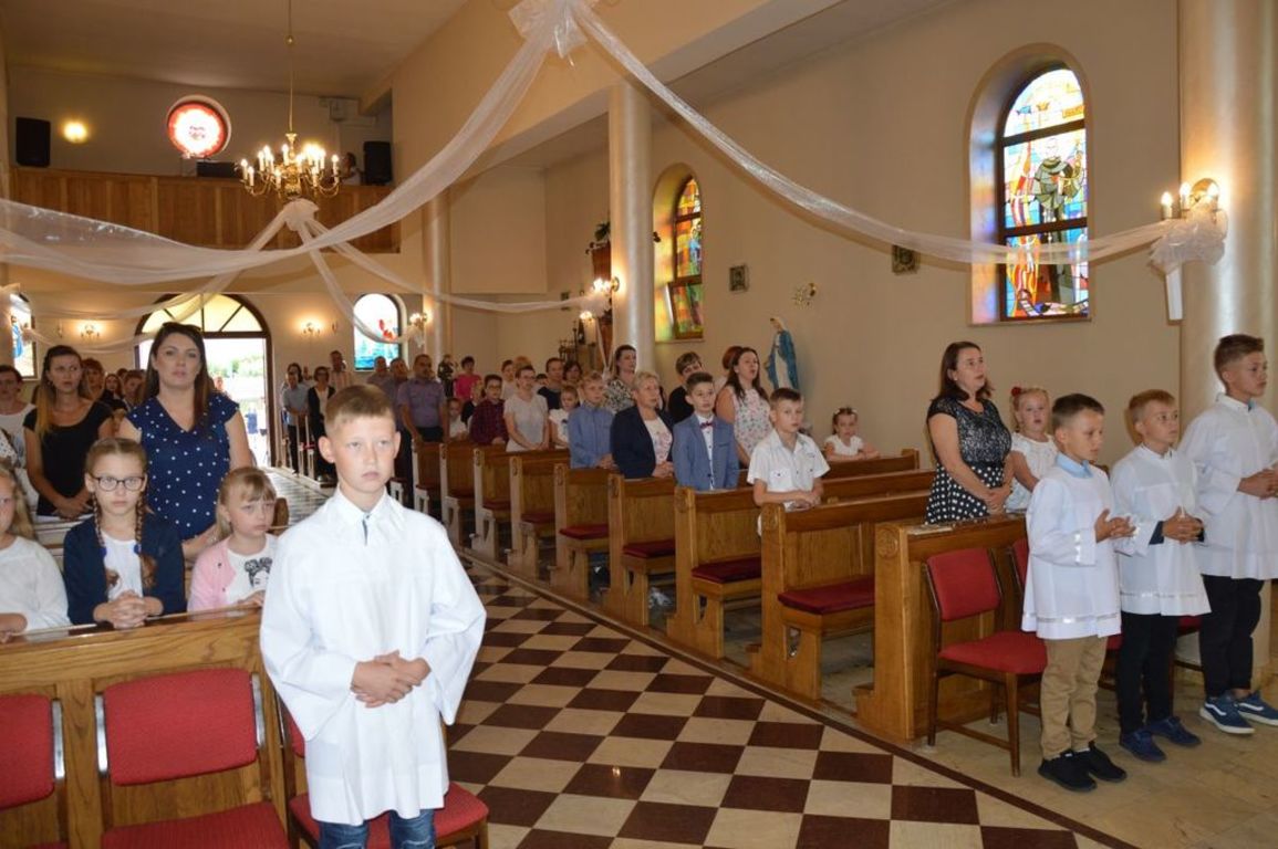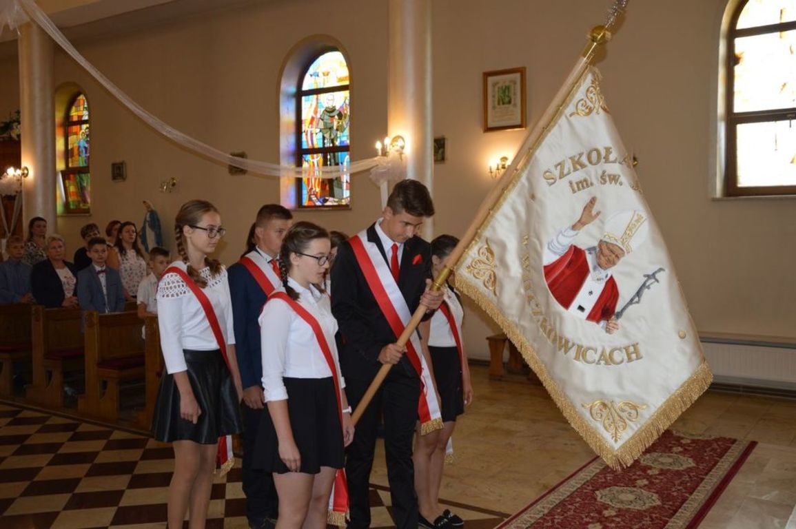 Z uśmiechem na twarzy stawili się uczniowie Szkoły Podstawowej im. św. Jana Pawła II w Wilczkowicach na inauguracji nowego roku szkolnego 2019/2020. Oprócz dzieci z oddziału przedszkolnego, uczniów klas I-VIII, grona pedagogicznego i dyrektora szkoły – dr. Zbigniewa Kowalczyka obecni byli również rodzice, dziadkowie oraz zaproszeni goście: Kierownik Centrum Usług Wspólnych – Ewelina Ptak i prof. dr hab. Uniwersytetu Pedagogicznego w Krakowie Marek Buś wraz ze swoją siostrą Elżbietą Kulej. Uroczystość rozpoczęła się Mszą świętą odprawioną przez księdza proboszcza Przemysława Ilnickiego.