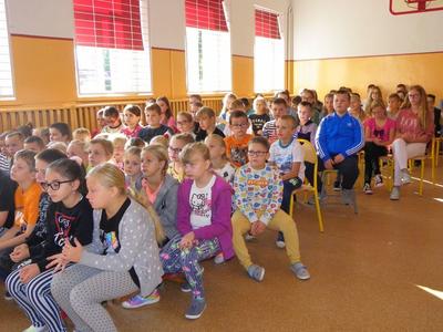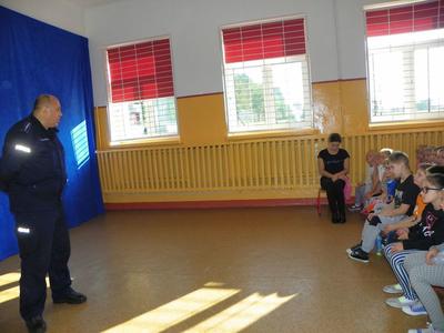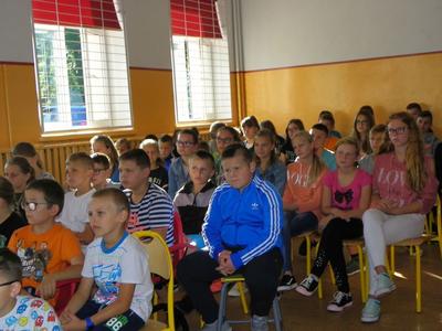 W dniu 12 września 2019 r. w ramach Ogólnopolskiej Akcji „Bezpieczna droga do szkoły i ze szkoły” uczniowie klas 0-VIII uczestniczyli w spotkaniu z policjantem Komisariatu Policji w Radoszycach - asp. Sławomirem Marchewką.