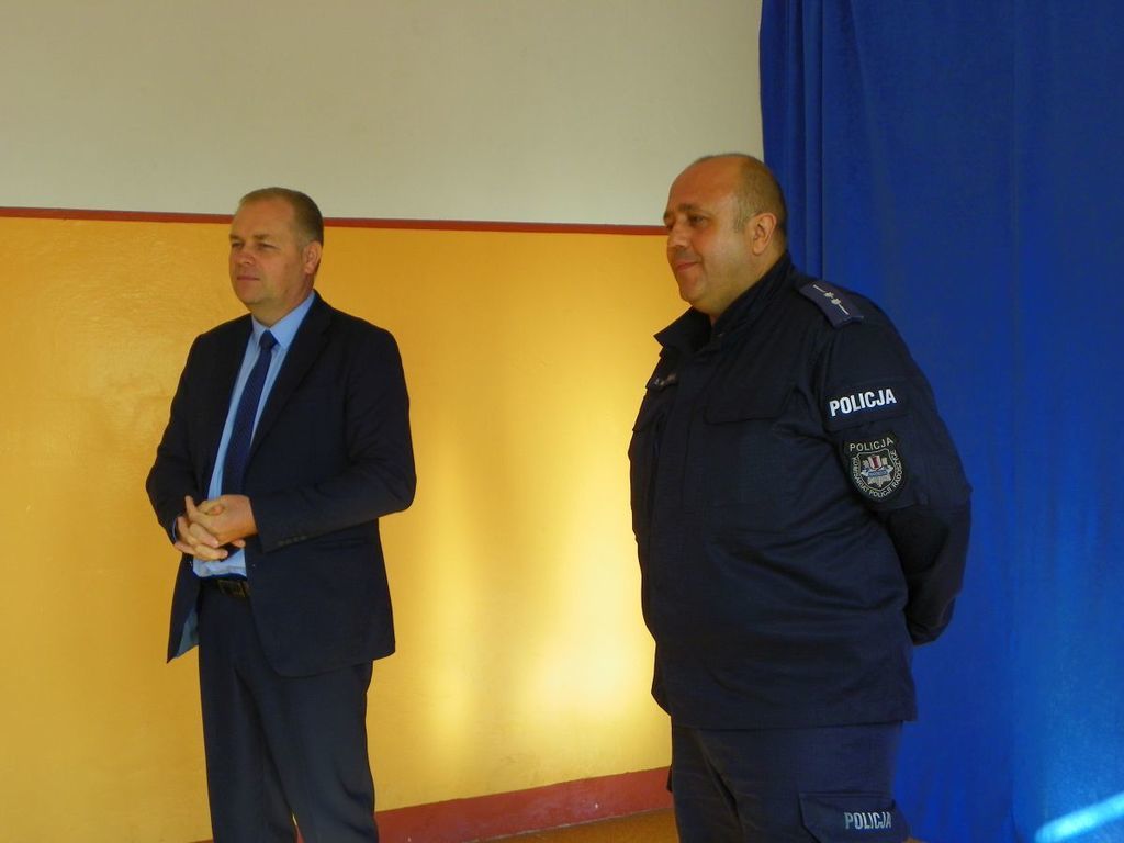 Funkcjonariusz przypomniał zasady bezpiecznego poruszania się po drodze pieszo jak i rowerem, przejścia przez drogę, zachęcał także do wyposażenia ubiorów i plecaków w elementy odblaskowe. Przestrzegał również przed zabawami w pobliżu jezdni. Policjant przypomniał, że nie każdy pierwszoklasista może być samodzielnym uczestnikiem ruchu drogowego. Zgodnie z art. 43 Ustawy prawo o ruchu drogowym, dziecko do 7 roku życia może korzystać z drogi tylko pod opieką osoby co najmniej 10-letniej. Z kolei rodzice, którzy przywożą dzieci do szkoły, powinni też pamiętać o obowiązku przewożenia ich w fotelikach ochronnych lub specjalnych siedziskach oraz o tym, iż dziecko pod szkołą należy wysadzać z samochodu od strony chodnika lub pobocza nie od strony jezdni. Podczas prelekcji funkcjonariusz policji przypomniał także uczniom, że pod żadnym pozorem nie wolno im iść z osobą, która nie jest ich opiekunem, nawet gdy tę osobę znają, a także nie wolno obcym udzielać informacji o sobie i swojej rodzinie. Jeśli przytrafi im się taka sytuacja, niezwłocznie muszą powiedzieć o tym rodzicom czy też nauczycielom w szkole.