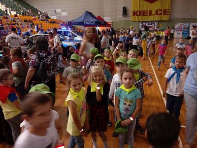W tegorocznej uroczystości wzięło udział ponad 2000 uczniów klas pierwszych reprezentujących szkoły z terenu województwa świętokrzyskiego. Również i nasi uczniowie z klasy pierwszej pod opieką Joanny Ściegiennej i Doroty Zborowskiej-Wilk wzięli udział w tegorocznej akcji Kochane Pierwszaki. W czasie wspólnej zabawy dzieci pogłębiały wiedzę na temat zagrożeń, a policjanci, strażacy i żołnierze praktycznie uczyli bezpiecznego zachowania się w ruchu drogowym, zaprezentowali też specjalistyczny sprzęt. Dzieci miały możliwość oglądania wozów policyjnych i wojskowych, sprzętu strażackiego oraz pojazdu quad, jakim posługują się strażacy podczas akcji. W czasie spotkania Biskup Pomocniczy Diecezji Kieleckiej Marian Florczyk poświęcił dzieciom tornistry i przybory szkolne oraz pobłogosławił na progu nauki szkolnej. Później dzieci wzięły udział we wspaniałej zabawie, tańczyły w rytm muzyki i wspólnie śpiewały piosenki. Uczniowie otrzymali od organizatorów odblaski, plany lekcji i słodki poczęstunek.