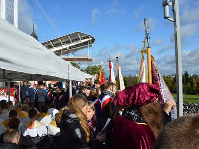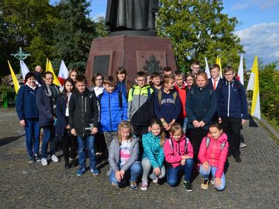 W dniu 10 października 2019 r. uczniowie naszej szkoły na czele z panem dyrektorem Zbigniewem Kowalczykiem wzięli udział w XIX Ogólnopolskiej Pielgrzymce Rodzin Szkół im. Papieża Jana Pawła II na Jasnej Górze. Tegoroczna pielgrzymka odbywała się pod hasłem Wstańcie, chodźmy. Było to spotkanie ponad 10 tys. osób z 240 placówek noszących imię św. Jana Pawła II w całej Polsce. Obecne były także delegacje z Wilna na Litwie i Grodna na Białorusi. W czasie spotkania nawiązano do czterdziestej rocznicy pierwszej pielgrzymki Jana Pawła II do Polski oraz setnej rocznicy urodzin Papieża-Polaka.